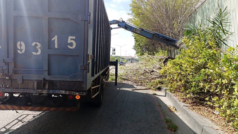 據了解,北林路上有3顆路樹倒塌馬路旁,影響慢車道通行,員警立即在場協助指揮交通,並通報勤務指揮中心聯絡市府養工處,於8時50分許養工處排除現場路樹,於9時0分完成清除並恢復交通順暢。