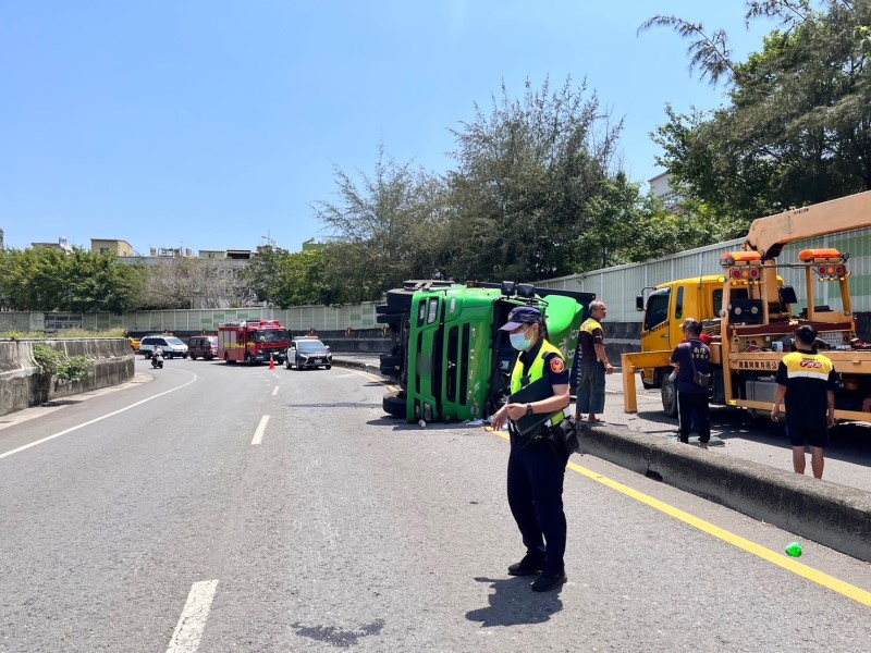 連結曳引車過彎翻覆 前鎮警疏導交通及時排除