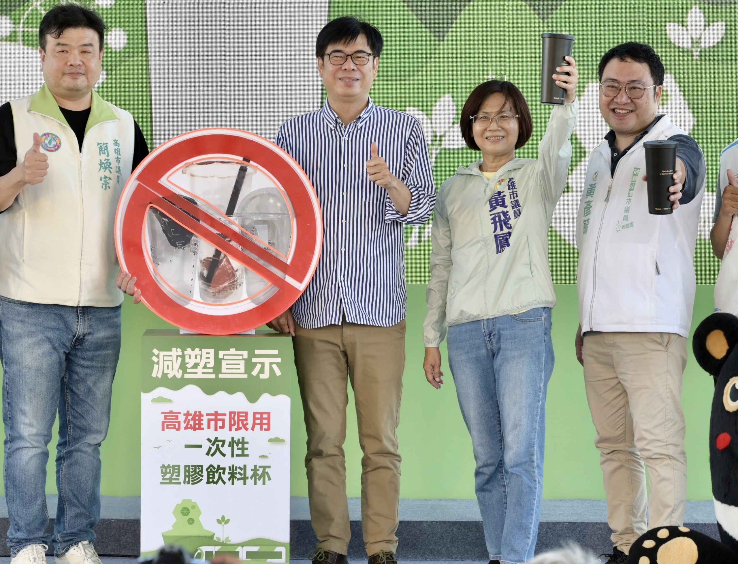 高雄市飲料店自112年7月1日起,配合行政院環保署限塑政策,不得提供一次用塑膠飲料杯,陳其邁表示,希望透過限用政策,削減約1億2,400萬個一次用塑膠杯,共減少約1,500公噸垃圾量,換算每年可減少約6,145公噸的碳排放,相當於高雄62座凹仔底公園的碳吸附量,減碳效益可觀。