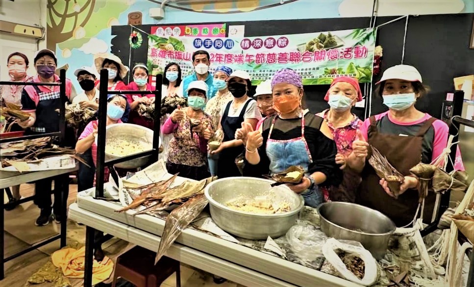 圖說 旗山區「旗手同心 情深意粽」活動,在充滿熱鬧又歡樂的節慶前夕以包粽關懷本區弱勢家庭。 (黃山高攝)