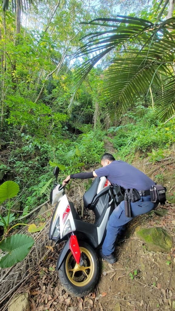 (記者李麗華報導)21歲謝姓男子日前前往高雄市田寮區中寮山迷路,而且普重機車滑落泥濘中無法行駛向警方求救,警方利用發報巡邏警車「警鳴器」確認謝男是否聽到警鳴器聲響,待謝男聽到警鳴器聲響後,請謝男鳴按喇叭聲回應,確認聲音來源後聽聲辨位上山找尋,果然皇天不負苦心人成功找到陷入困境之謝姓男子。