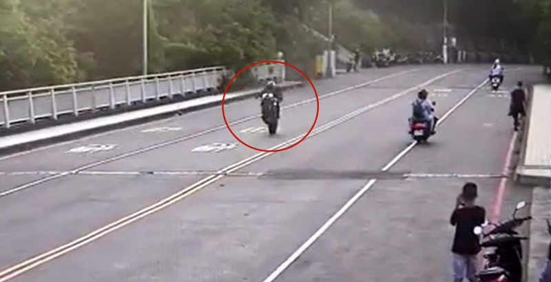 圖說:有機車以「翹孤輪」方式出現在萬壽橋,警方循線通知車主到場說明並依公共危險罪嫌送辦。(高雄市鼓山警分局提供)