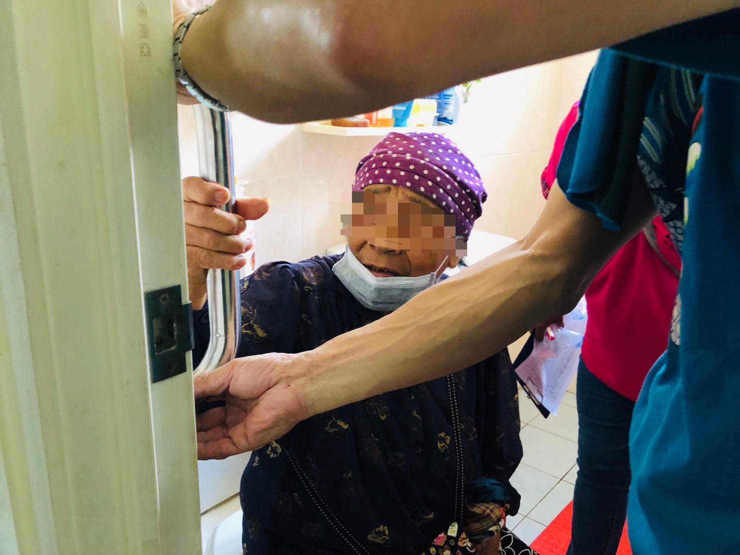 慈善團體至長者家中安裝洗手台扶手。(高雄市衛生局提供)