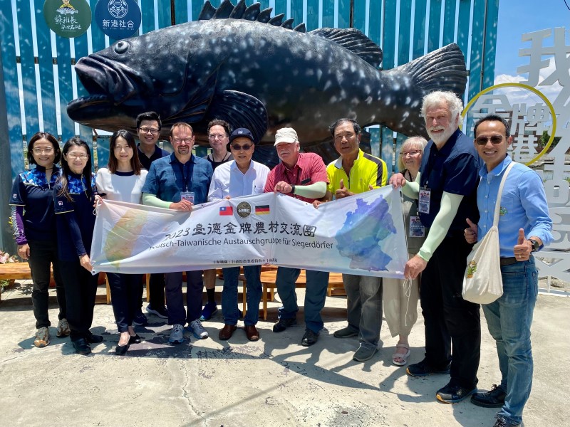 今(30)日德國金牌農村的夥伴在新港社區進行了一場文化與產業的導覽,除了參訪在地的鹽文史館,更驚艷石斑魚養殖場水是用鑽石水來做養殖。鑽石水是中油液化天然氣廠,引進海水做冷卻後,原本要排回大海,經過公共工程導入魚池中,創造循環經濟,讓水溫在炎熱的高雄可以維持在21~25度間,非常符合石斑魚養殖條件,當然也體驗了最在地的石斑魚料理,眾人皆對美味料理讚不絕口。