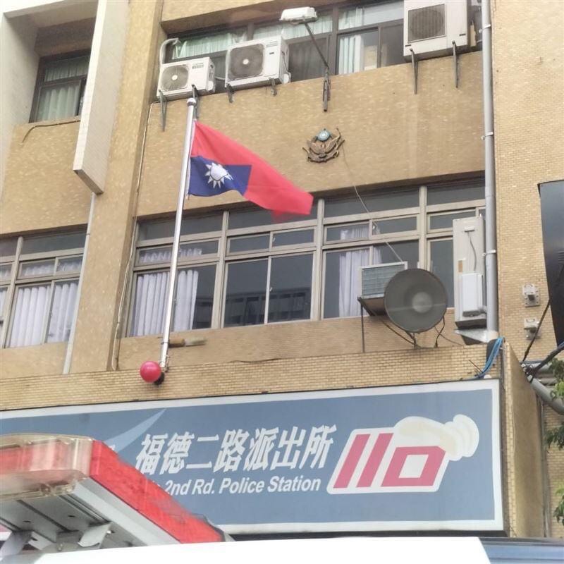 高雄市苓雅警分局福德二路派出所,今(1)日上午6時例行由值班員警升旗,由於早上陰雨綿綿,可能是警察北北太過慌忙,匆忙間將國旗反掛升上旗幟,未檢查就下樓,而當反掛的國旗出現在人來人往派出所前,立刻引來民眾議論紛紛。