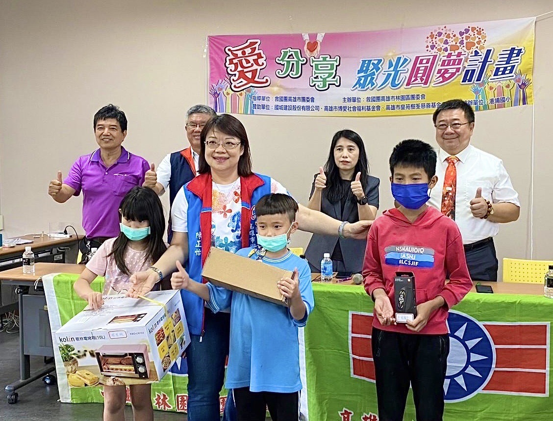 救國團林園區團委會「愛‧分享」聚光計畫公益活動於6月30日由高雄市博愛社會福利基金會董事長同時也是救國團高雄市團委會顧問楊煜德,以及救國團高雄市團委會副主任委員陳正怡及總幹事梁明峰、救國團一起搖擺總會長張榮成、救國團林園區團委會副會長黃景榮、高雄市議員王耀裕帶著20位善心人士的愛心禮物,來到港埔國小將圓夢禮物致贈給小朋友。