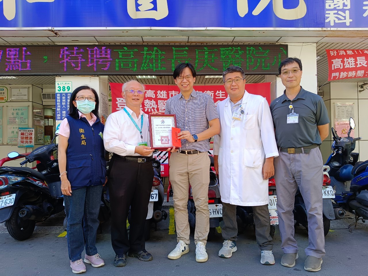 高雄市今(2)日公布新增1例本土登革熱確診個案(累計第4例),個案為40多歲男性,於6/30夜間出現發燒、頭痛、肌肉痠痛、關節痛、背痛、骨頭痛等症狀,7/1至杏和醫院就醫,經採檢NS1快篩陽性、PCR陽性(登革熱第一型),與臺南市登革熱群聚檢出血清型同。本案於發病隔天上午立即前往杏和醫院看診,並由該院潘柏霖醫師通報並採檢送驗確診(隱藏期小於1天),社區緊急防治工作同時啟動。今(2)日上午衛生局長黃志中親自前往該院頒發感謝狀並致贈通報獎勵金,並期勉各級醫療院所持續落實TOCC問診,加強通報採檢。