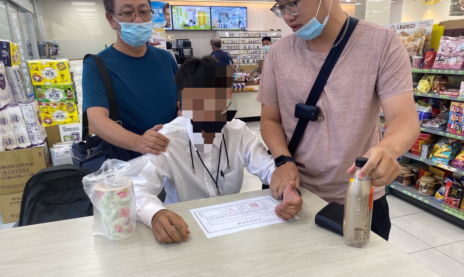 圖說:警方與詐徒相約在路竹區中興路某超商交付投資金額新臺幣30萬,另於約定取款地周遭布署數名警力進行埋伏,一擁而上逮捕劉男。(高雄市湖內警分局提供)