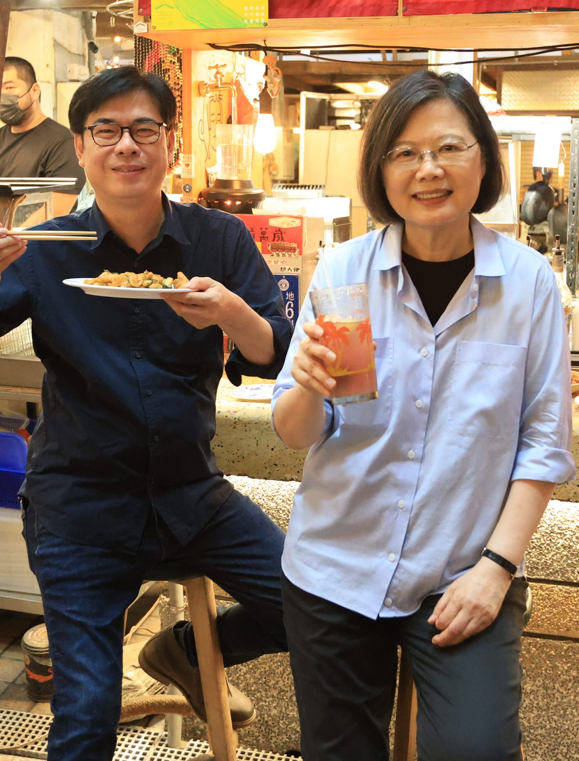 圖說:高雄市長陳其邁陪同總統蔡英文、立委李昆澤、議長康裕成等人走訪鹽埕第一公有市場。(高雄市政府提供)