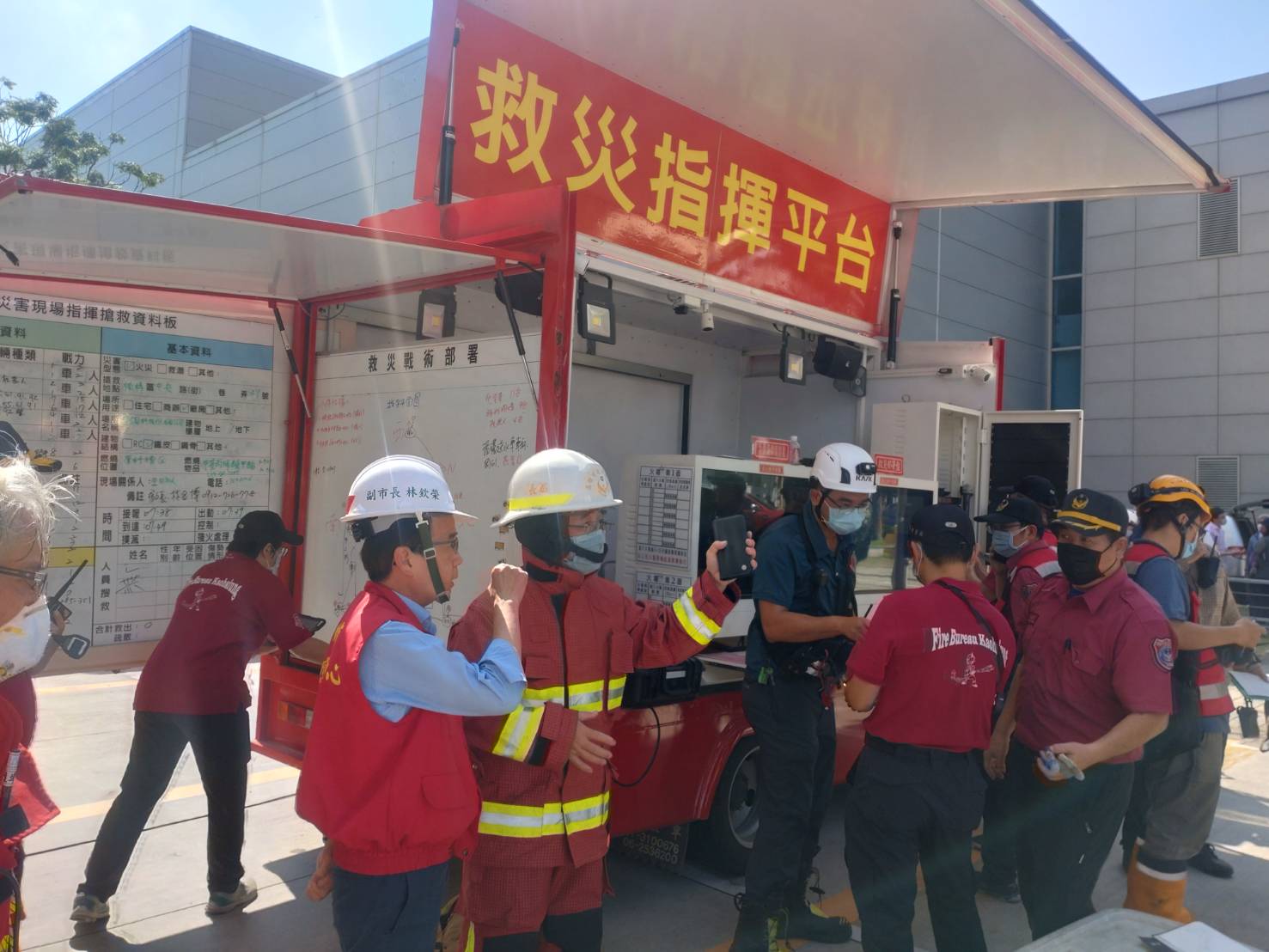 高雄市長陳其邁第一時間立即指派林欽榮副市長到場指揮市府相關局處協助加工區救災工作。(高雄市政府提供)