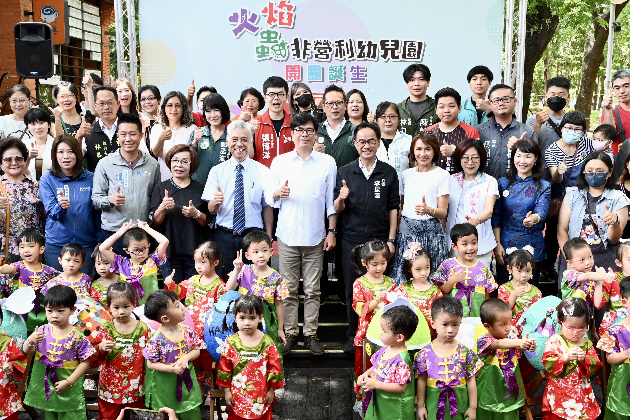 (記者謝富益報導)全國首創客語沉浸式非營利幼兒園「火焰蟲非營利幼兒園」今(21)日於新客家文化園區雨豆廣場盛大舉辦開園活動,高雄市長陳其邁、客委會副主委范佐銘、立委李昆澤、邱議瑩、議長康裕成及多位在地議員一同參與幼兒園誕生儀式,以代表祝福的希望之槌,敲破彩蛋誕生火焰蟲寶寶,共同見證高雄孕育出全國第一座在都會中的客語非營利幼兒園,展現對客語文化傳承的重視和支持。