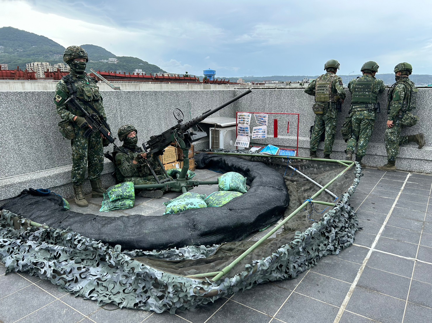 (記者王清正報導)國軍「漢光39號」實兵演習今(27)日進入第4天,第三作戰區於新北地區展開「聯合反登陸作戰」,結合陸、海、空兵力與後備軍人,阻絕企圖登陸的敵軍,予以反擊,展現三軍聯合作戰與常後一體的全民防衛戰力。演習模擬敵企圖從淡水河口登陸,海軍派遣布雷艇及飛彈快艇,於河口實施水雷布放與警戒。同時,台北港周邊也出現疑似敵第5縱隊特工人員,桃園憲兵隊立即編組機動巡邏,與港務警察總隊協力維護台北港安全。