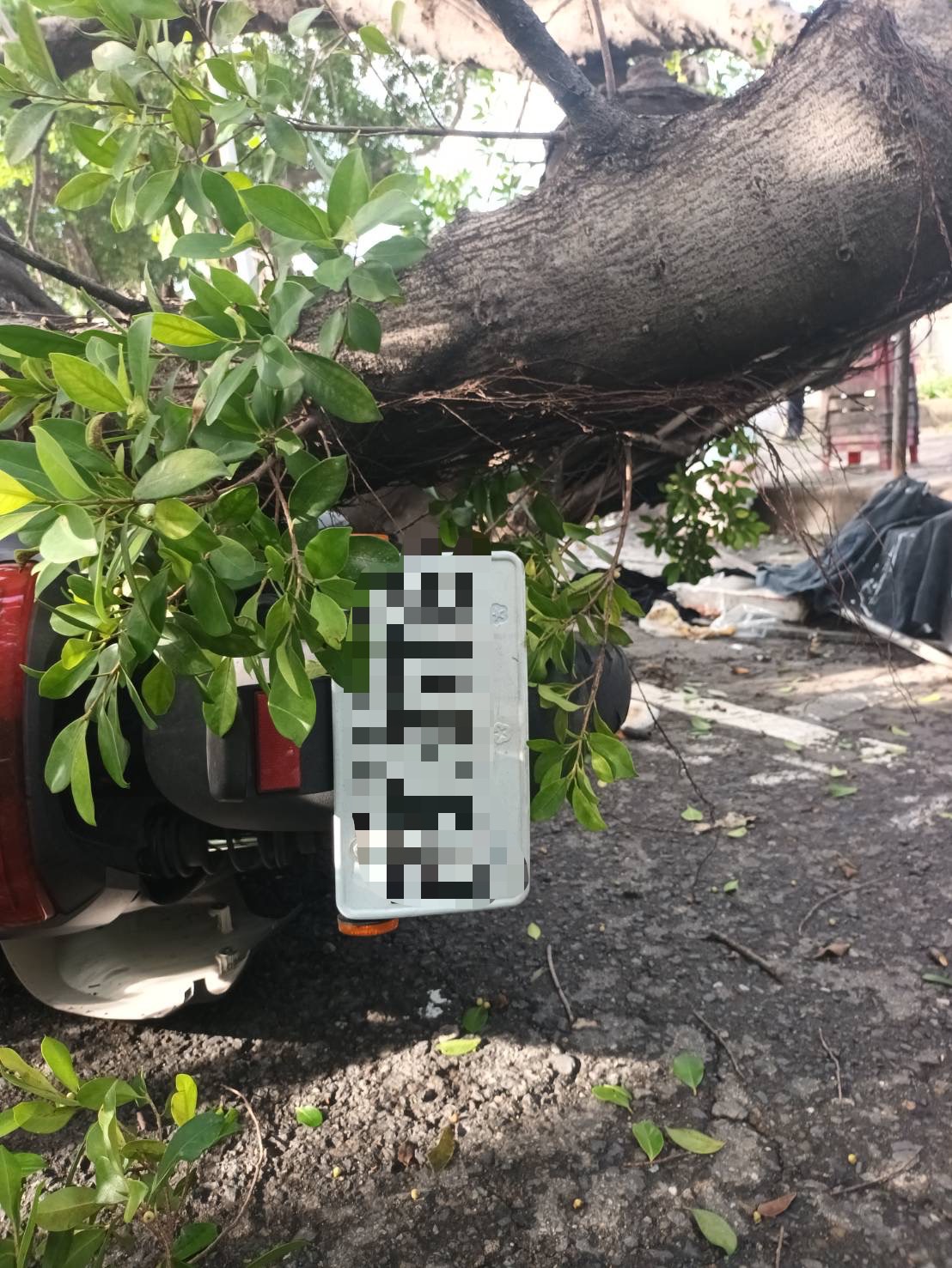 警方表示,行道樹因連日下雨,土石質鬆軟加上樹葉茂盛路樹自然倒塌,有2名機車騎士行經該處時,被倒塌路樹壓傷,受傷民眾郭0穲(82年次)送小港醫院,莊0宣(76年次)自行就醫,兩人均肩部輕傷無大礙。現場另有一部自小客車遭波及,車內無人。
