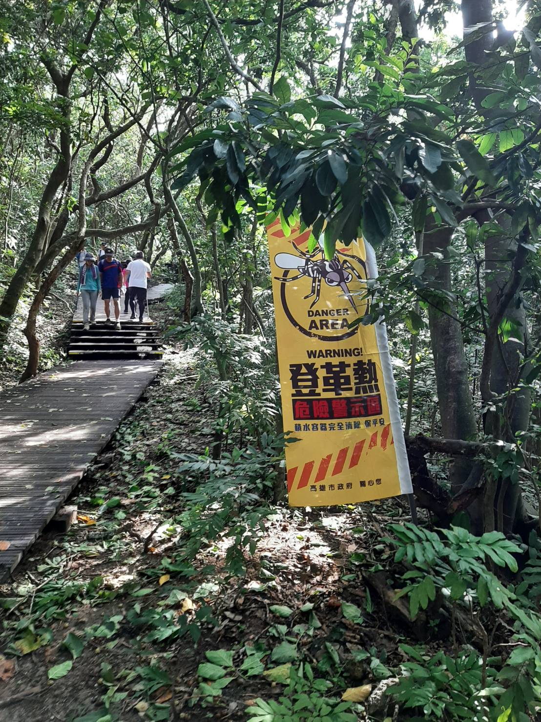包含自舊地磅輸送口遺址至長壽園路段設置登革熱警戒旗、登山步各個休息點提供防蚊液給民眾使用、進行登山步道蘇力菌生物防治噴灑滅孑、利用Gravitrap進行病媒蚊密度監測、請鼓山區公所針對沿山腳處的里別進行環境大掃盪,國產署則針對權管空屋、空地進行化學防治及環境整頓,由於該地鄰近動物園人潮密集,故請觀光局加強園區內孳生源巡檢及化學防治。另國家自然公園管理處配合登革熱防制,將全面清理園區積水容器,並呼籲民眾勿私自攜帶茶具、茶杯、水桶等容器上山,如經查獲將沒收處理。