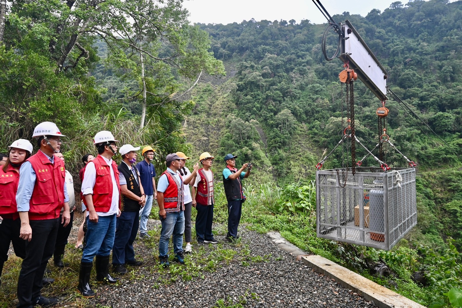 最後,陳其邁視察桃源區勤和里上方流籠現況,他表示,這次視察流籠運作都正常,因農路毀損導致災損的部分,市府也會全力協調,對於農民需行經吊橋運輸農產的問題,也會研議小型農機機械車是否符合族人農民的需求,他也感謝桃源區區長及各里長辛苦在颱風期間第一線協助里民撤離工作。