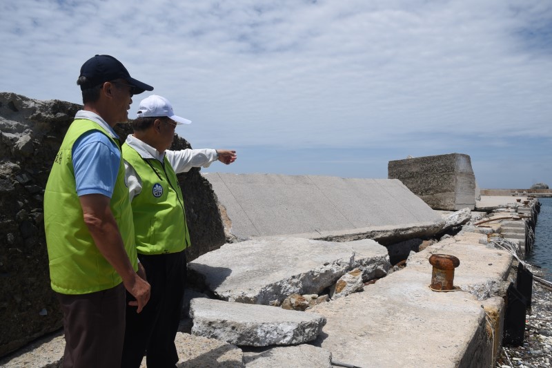 接著來到七美視察南滬港碼頭,關心港口消波塊消波情形,建議可就地取材,利用現有石塊強化消波功能。針對航道警示燈毀損,陳光復指示儘速修復,以維船隻航行安全。