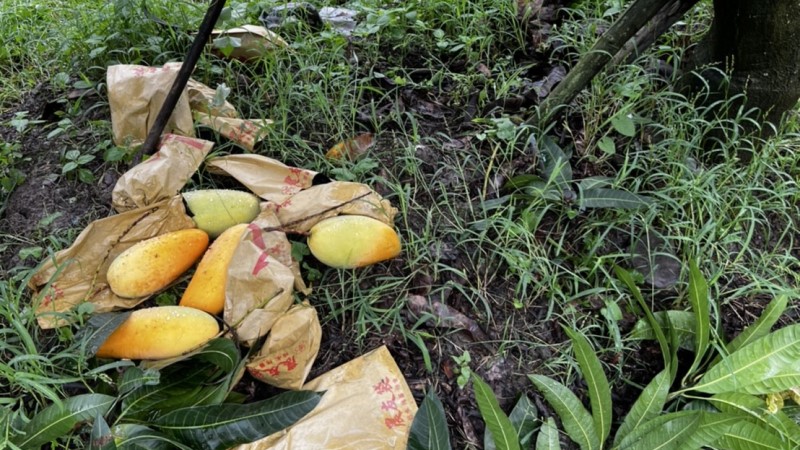 受到卡努颱風影響,高雄山區改良種芒果受損嚴重。(高雄市農業局提供)