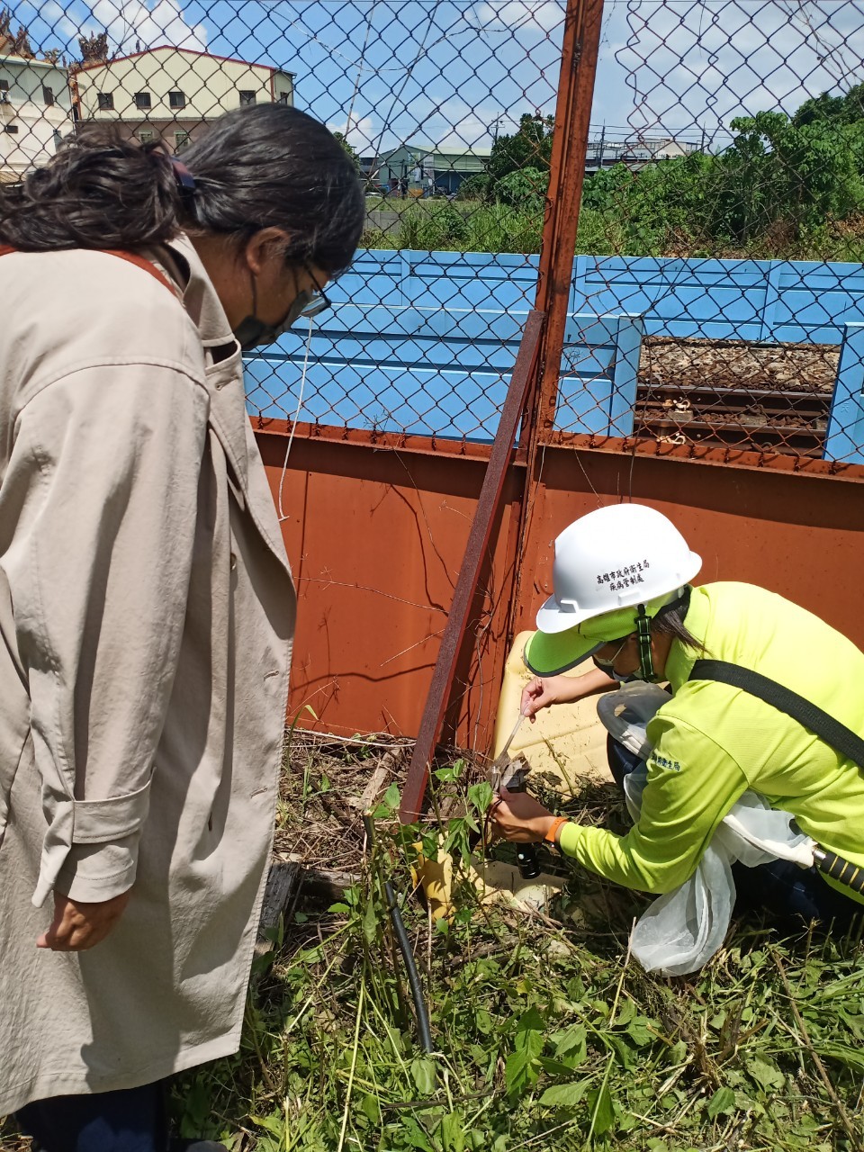 防疫團隊查獲工地垃圾桶、紐澤西護欄陽點已舉發並勒停工,社區亦發現水桶、塑膠蓋等陽點,並開立舉發單,呼籲工地及社區民眾加強巡查容器巡倒清刷、並做容器減量。(高雄市衛生局提供)