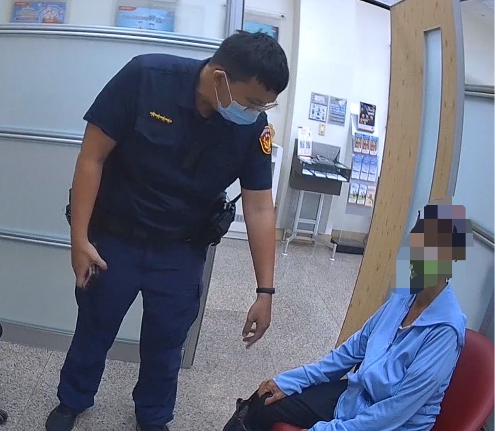 謝婦疑似遭詐騙,打算匯款新臺幣63萬元給詐騙集團,王巡佐等2人趕赴到場後,了解對方匯款動機,研判發現她落入了「猜猜我是誰?」詐騙陷阱。(高雄市湖內警分局提供)