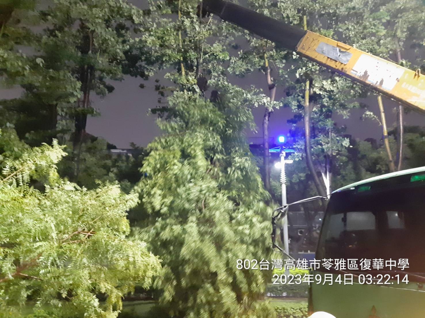 高雄市政府統計,海葵颱風造成全市路樹倒塌約198件、廣告招牌掉落13件、積淹水約50處、交通號誌損壞2件。(高雄市政府提供)