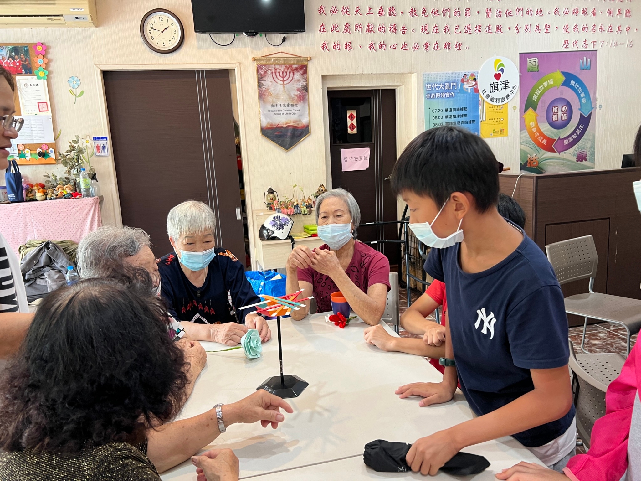 國小升四年級的小鈞與其他伙伴8月來到北汕巷弄站據點,和長輩們分組玩「數字大格鬥」桌遊,遊戲利用數字的加減、數字配對來完成陣地佔領,藉由簡易的加減法幫助長輩活化大腦。小鈞平時講國語,主動挑戰自己不太靈光的台語與長輩互動,長輩們都覺得桌遊很有趣,尤其與小伙伴們互動,讓他們跨越年齡的限制,感覺特別開心歡樂。