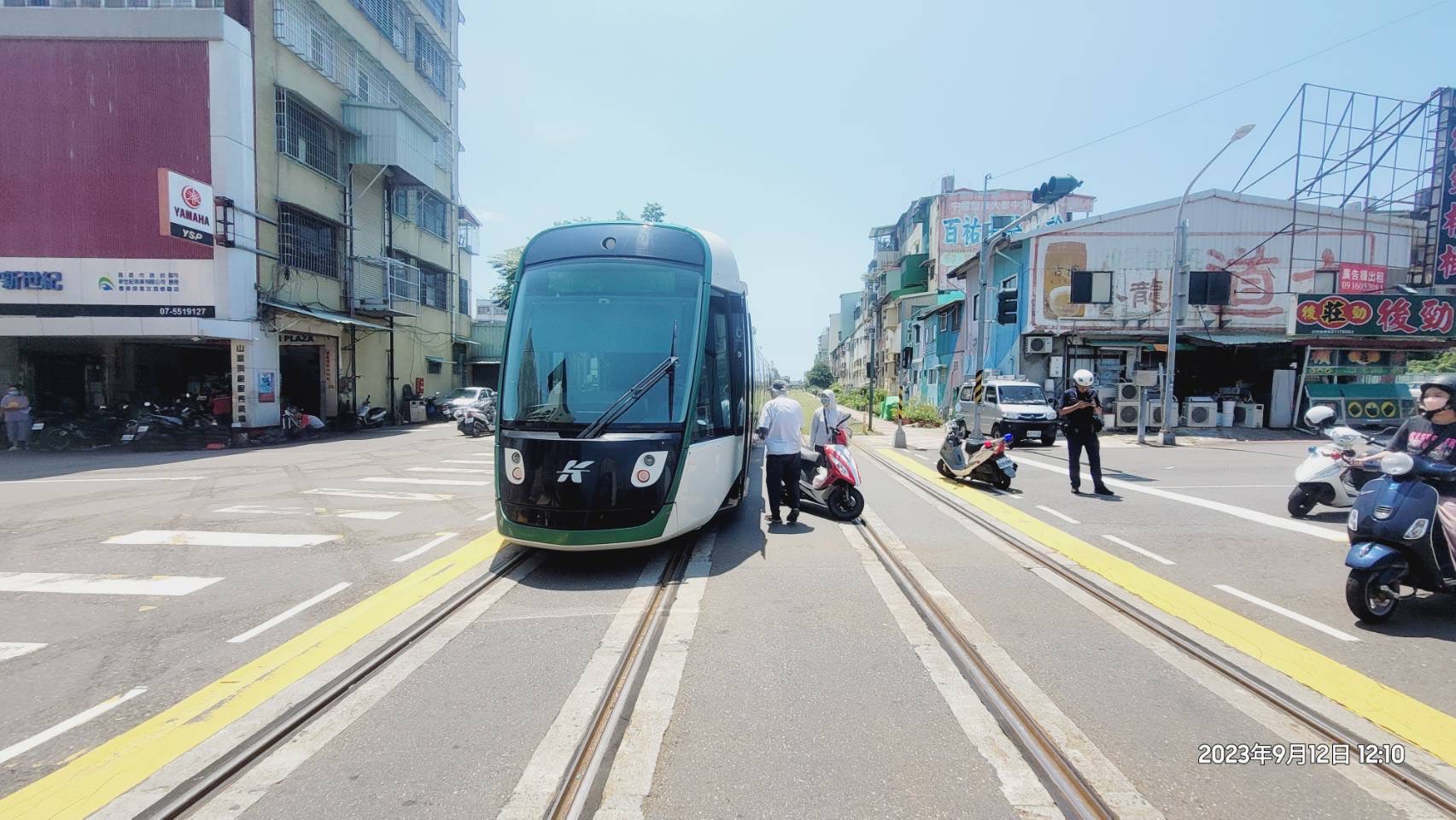 疑未注意輕軌號誌 女子騎機車擦撞輕軌幸無大礙