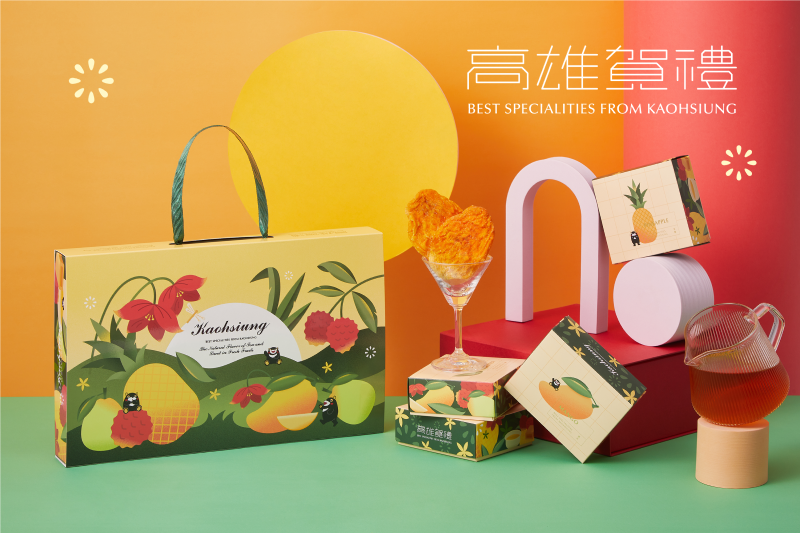 為推廣高雄農特產品,高市府特別為中秋「高雄賀禮」禮盒進行視覺設計,以「打造繽紛水果天地的遊樂園」為概念,融合高雄豐盛的農產元素,包含鳳梨、芭樂、玉荷包、芒果等果乾以及山茶等,呈現歡樂創意的探險主題,民眾與親朋好友分享時,增添一份童趣的話題。