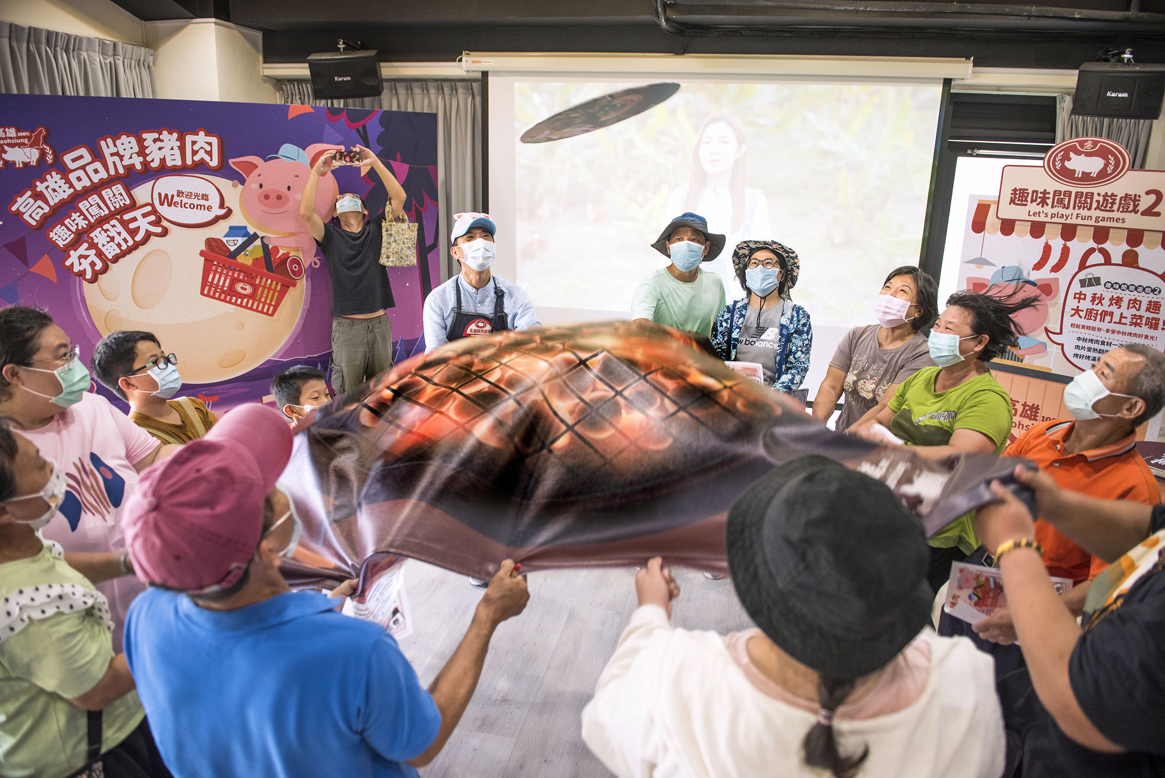 現場搭配展板介紹高雄在地品牌畜禽產品,包括田寮區農會田那提鹹豬肉及產銷履歷豬肉、仁允牧場肉品及純肉鬆、寶島第一味酒釀玉荷包香腸、得意中華畜產加工料理包、石安牧場動福蛋、元榆牧場衝浪雞、仁福牧場喜哈蛋、水泉農場萬步雞、高雄市新生活生乳運銷合作社新生活純鮮乳品、久益牧場久益鮮乳、水流莊牧場鮮羊乳系列產品等,誘人國產豬肉好料香氣四溢伴隨闖關互動,讓大家在玩樂中也了解生產農民的理念及用心經營。