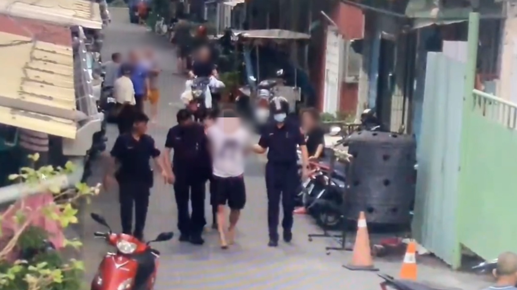 警方表示,王男見員警在後方窮追不捨,趁機跑入民宅並將大門反鎖,楊員見狀立即通報所內警網支援攔截圍捕,並在民宅的前後門佈署警力,結果王男不顧自身安全竟作困獸之鬥,翻牆朝隔壁施工的建案工地逃竄,最後在工地旁的巷弄內順利追上氣喘吁吁的王男,成功將其緝捕歸案。