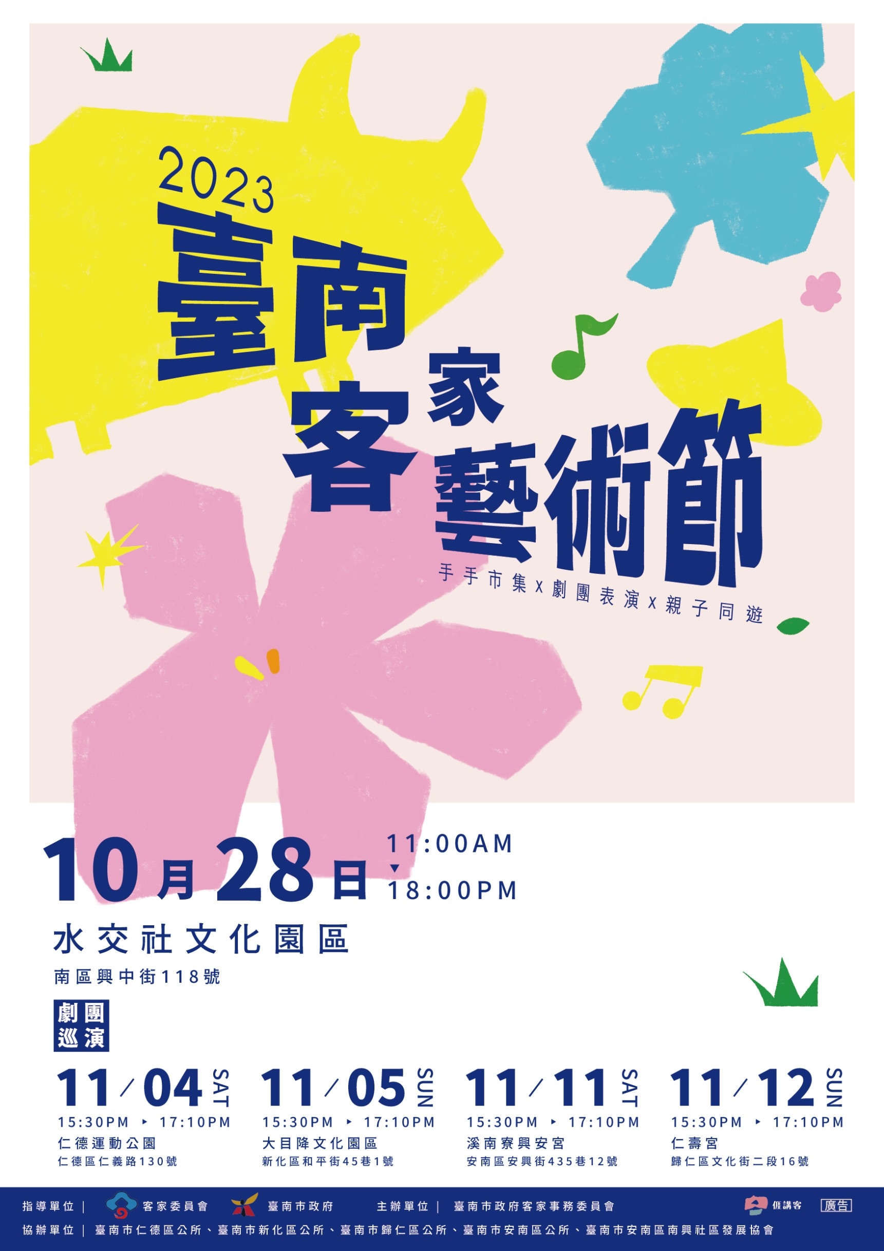 臺南市政府客委會表示,活動精彩可期,當天不僅有街頭藝人表演,還有精彩的劇團及音樂演出、好吃好玩的手手市集。有興趣的民眾歡迎至「臺南市政府客家事務委員會」FB粉專查看更多活動訊息。