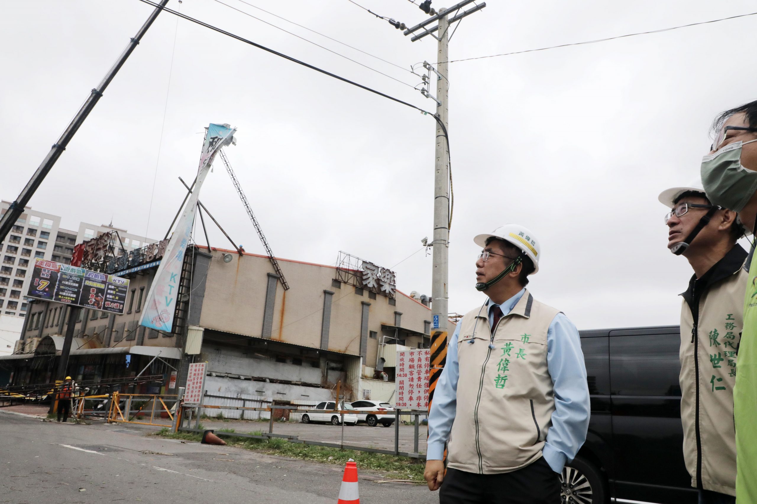 黃偉哲視察中西區大樓磁磚掉落及北區危險招牌 呼籲民眾減少非必要外出持續加強防颱