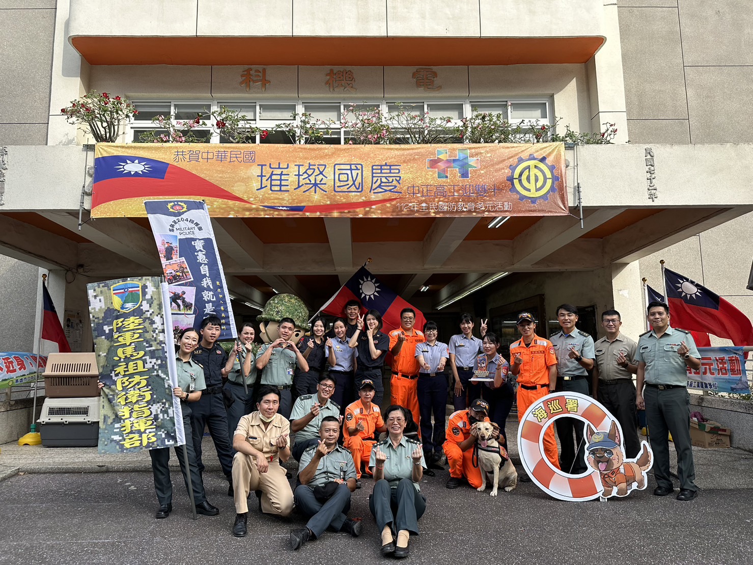 (記者張淑慧報導)迎接雙十國慶,「112璀璨國慶中正高工迎雙十」,全民國防教育系列登場校園裡陳掛閃亮的大型慶賀布條、張貼海報說明「雙十節由來」,也邀請國軍13個單位到校設攤,並有「國軍娃娃舞」、「海巡緝毒犬」、「傘力全開」等快閃表演。激發學生的愛國情操,支持全民國防。
