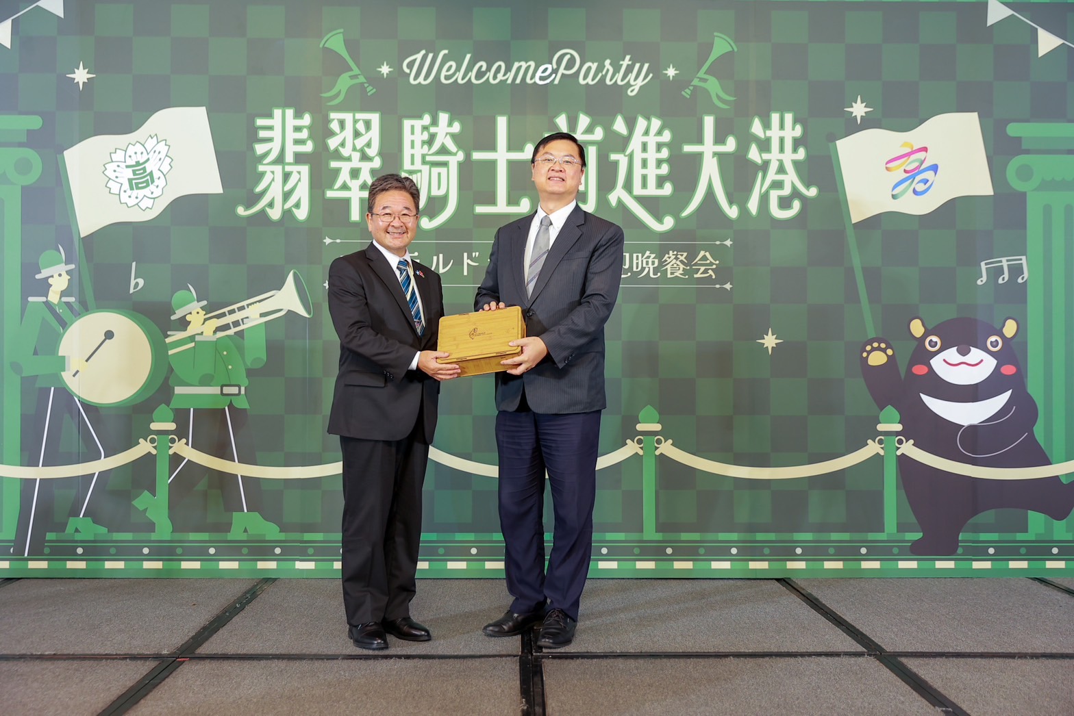 高雄市副市長羅達生親自歡迎學生,代表市政府致贈六龜山茶禮盒以及特別刻上「台日友好、高雄永遠為你們加油!」字樣的大港橋小夜燈。「希望大家玩得開心盡興,預祝在高雄的演出完美順利!」羅達生強調,高雄市政府非常重視與日本的交流,期待翡翠騎士這次來高雄演出,透過音樂深化台日友誼。