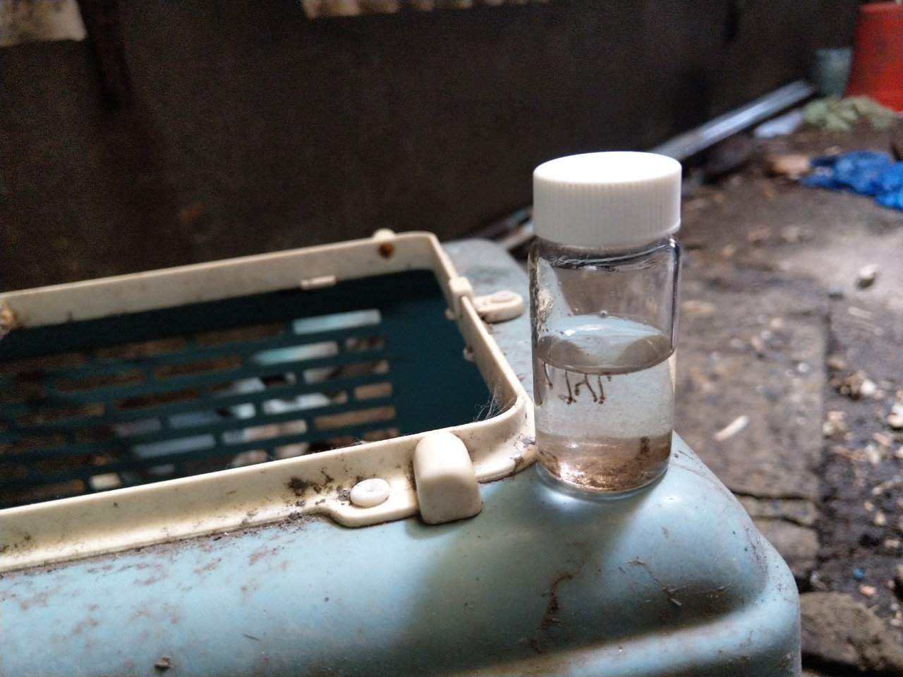 .髒亂防火巷雜物堆積,查獲兩處積水容器孳生病媒蚊孑孓。(高雄市衛生局提供)