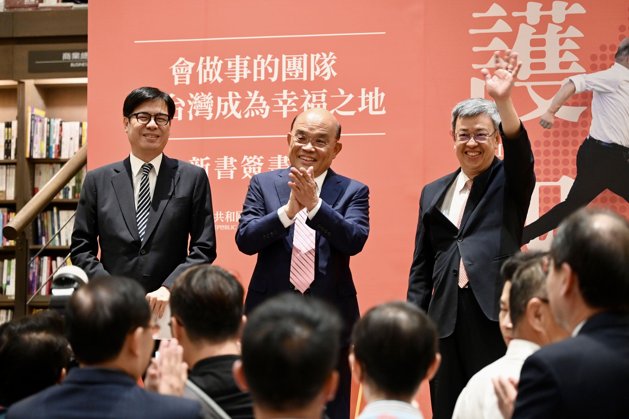 (記者吳冠賢報導)前行政院長蘇貞昌今(14)日在高雄舉辦《護國四年》新書發表會,高雄市長陳其邁、行政院長陳建仁一同出席,在地立委議員們全部到場支持,大量民眾湧入會場,氣氛熱絡。