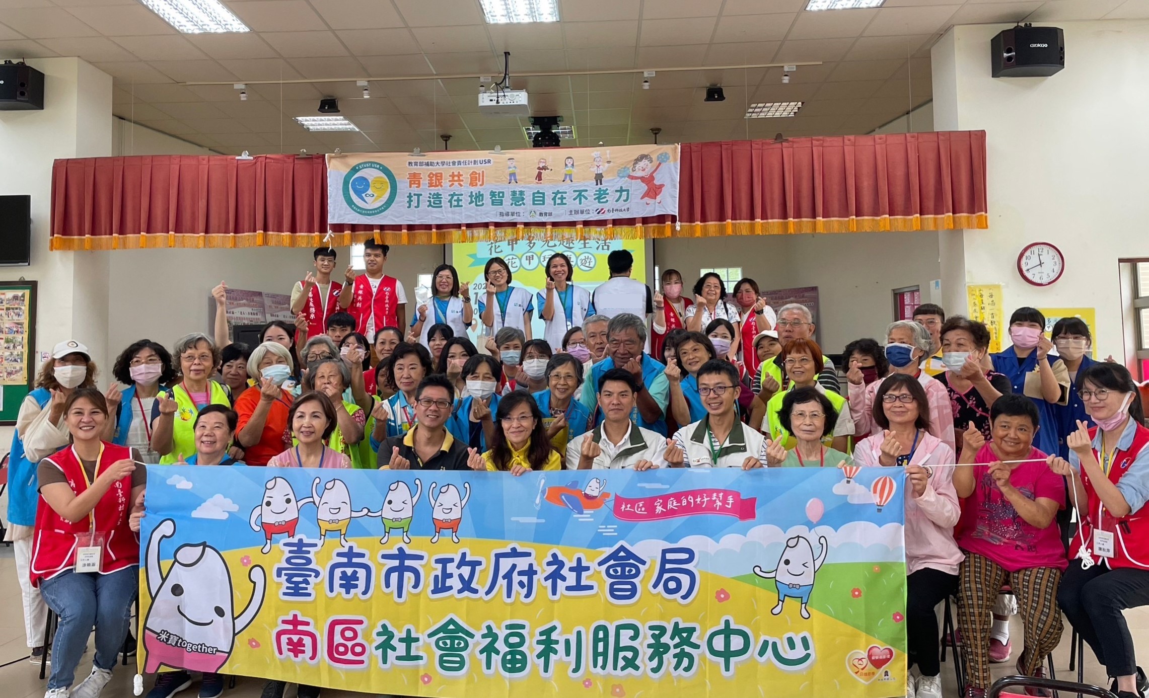 社會局盧禹璁局長指出,南臺科技大學為實踐大學社會責任(USR)在南區成立「蚵在心底的鯤鯓工作站」,從關注高齡社會議題走進社區實際參與關懷行動,平時除辦理促進社區高齡長輩福祉活動外,也協助社區永續發展。此次活動結合南區衛生所銀髮俱樂部、大專學生及富邦人壽志工引導操作桌遊競賽、絹印及體適能體驗,是一個公私協力的很好示範。