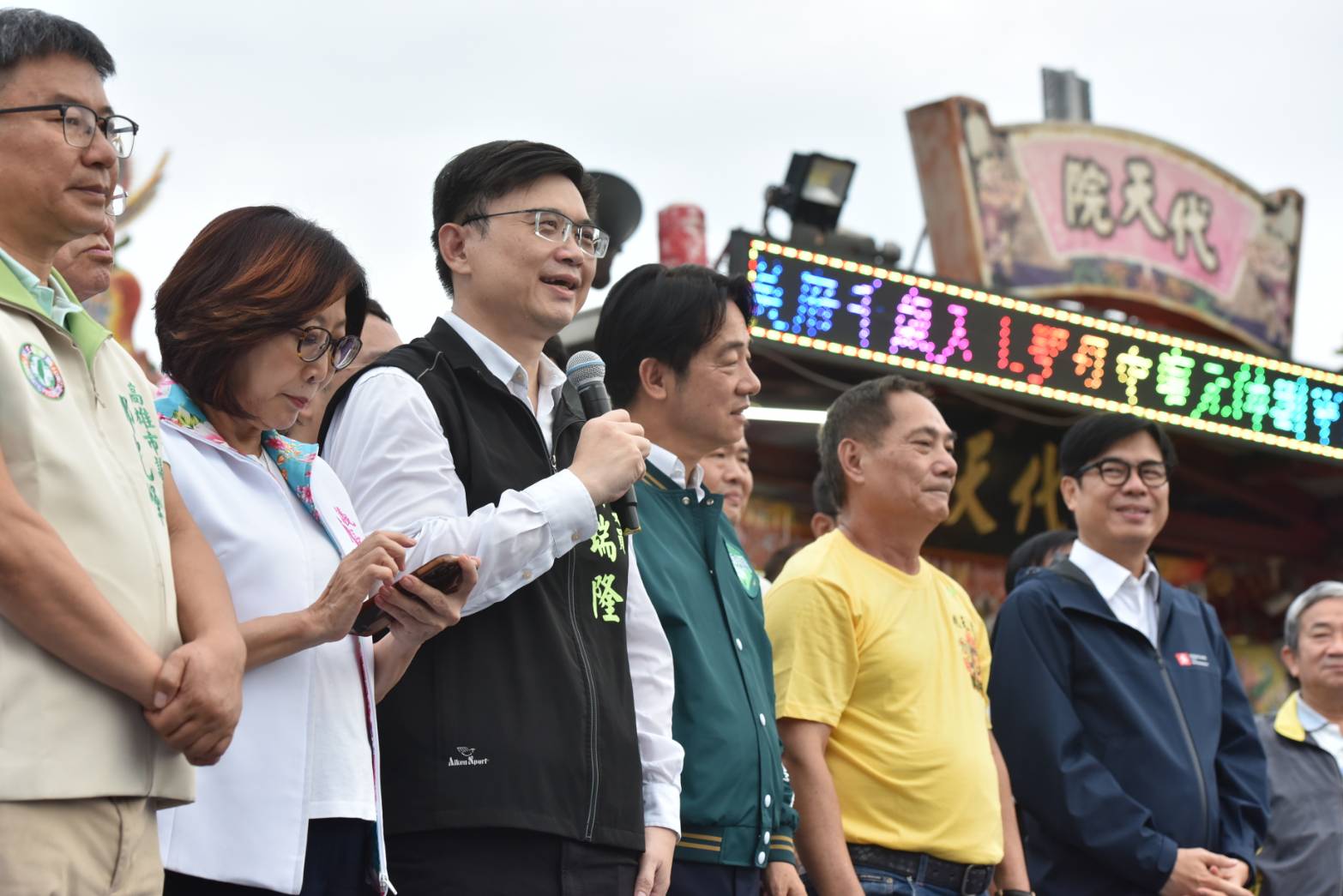 (記者吳冠賢報導)副總統、民進黨總統參選人賴清德,今(15)日南下高雄前鎮區籬仔內代天院、鎮南宮參拜祈福,並向鄉親推薦第一名好立委賴瑞隆,懇請鄉親全力支持,讓賴清德、賴瑞隆一起為台灣、為高雄建設發展打拼。陳其邁市長、郭玟成前立委、林宛蓉前議員、鄭光峰議員、黃彥毓議員、李喬如議員、簡煥宗議員、吳銘賜議員、李順進議員、邱俊憲議員、前鎮區里長、各後援會會長及上百位鄉親也一同到場支持。