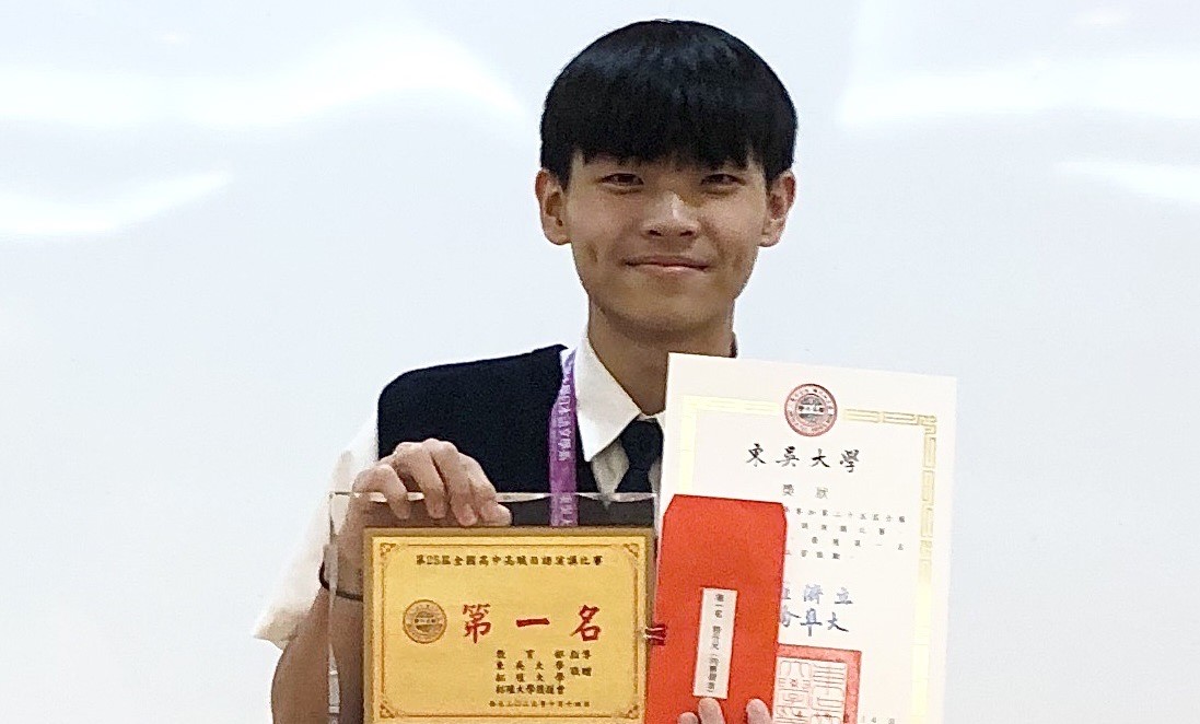 樹德家商應用日語科學生王丞賢參加第25屆全國高中高職日語演講比賽,榮獲全國第一名。(樹德家商提供)