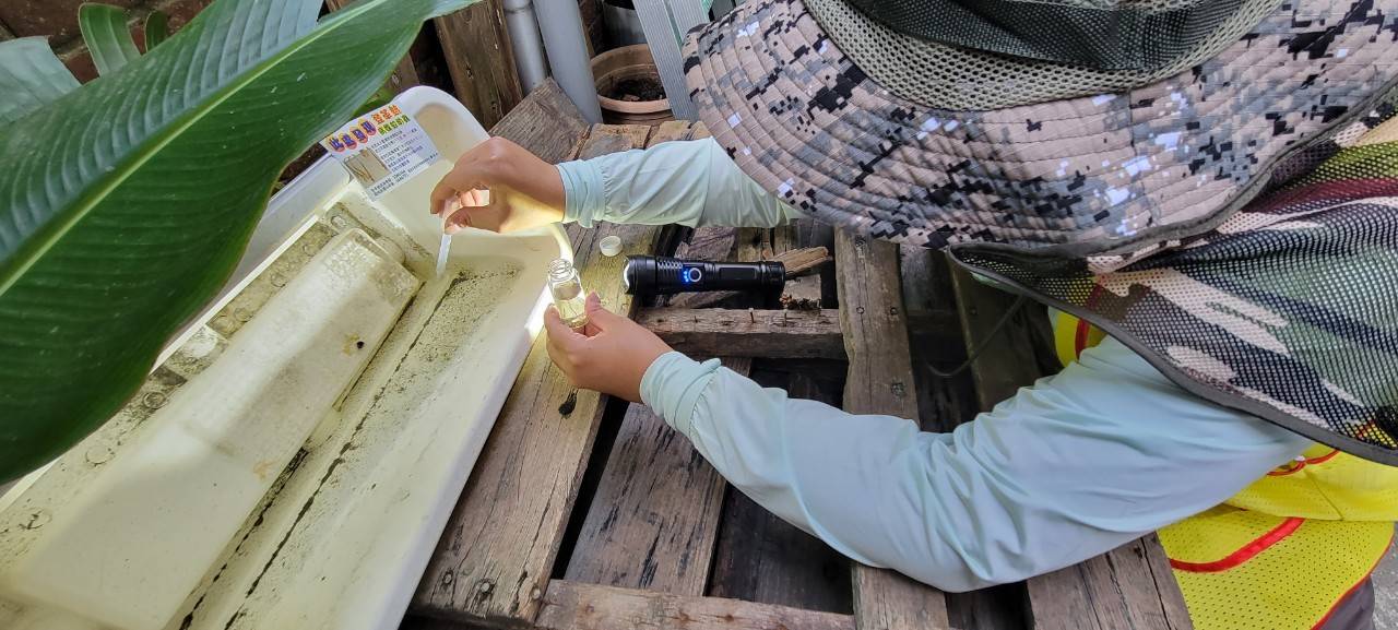 南市府登革熱稽督大隊持續嚴格進行社區孳生源清除及稽督工作。(臺南市政府衛生局提供)