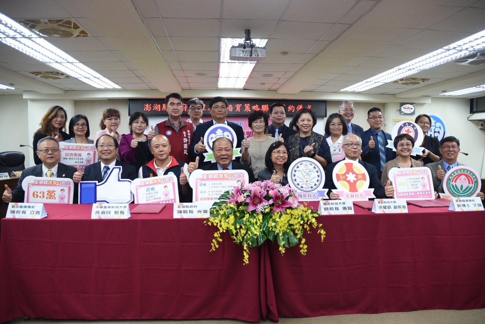 澎湖縣府與五大護理學校策略聯盟簽約。(澎湖縣政府提供)