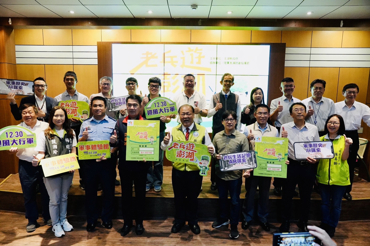 (記者李文賓報導)澎湖縣政府為推廣秋冬觀光旅遊,今年推出以秋冬軍事主題系列活動,包含「軍事體驗館」、「老兵遊澎湖消費優惠」、「軍事AR探索」以及「迎風大行軍」,縣長陳光復24日上午主持活動記者會,並邀請現任東海大學創意設計暨藝術學院許和捷院長到場,分享在澎湖當兵的回憶。