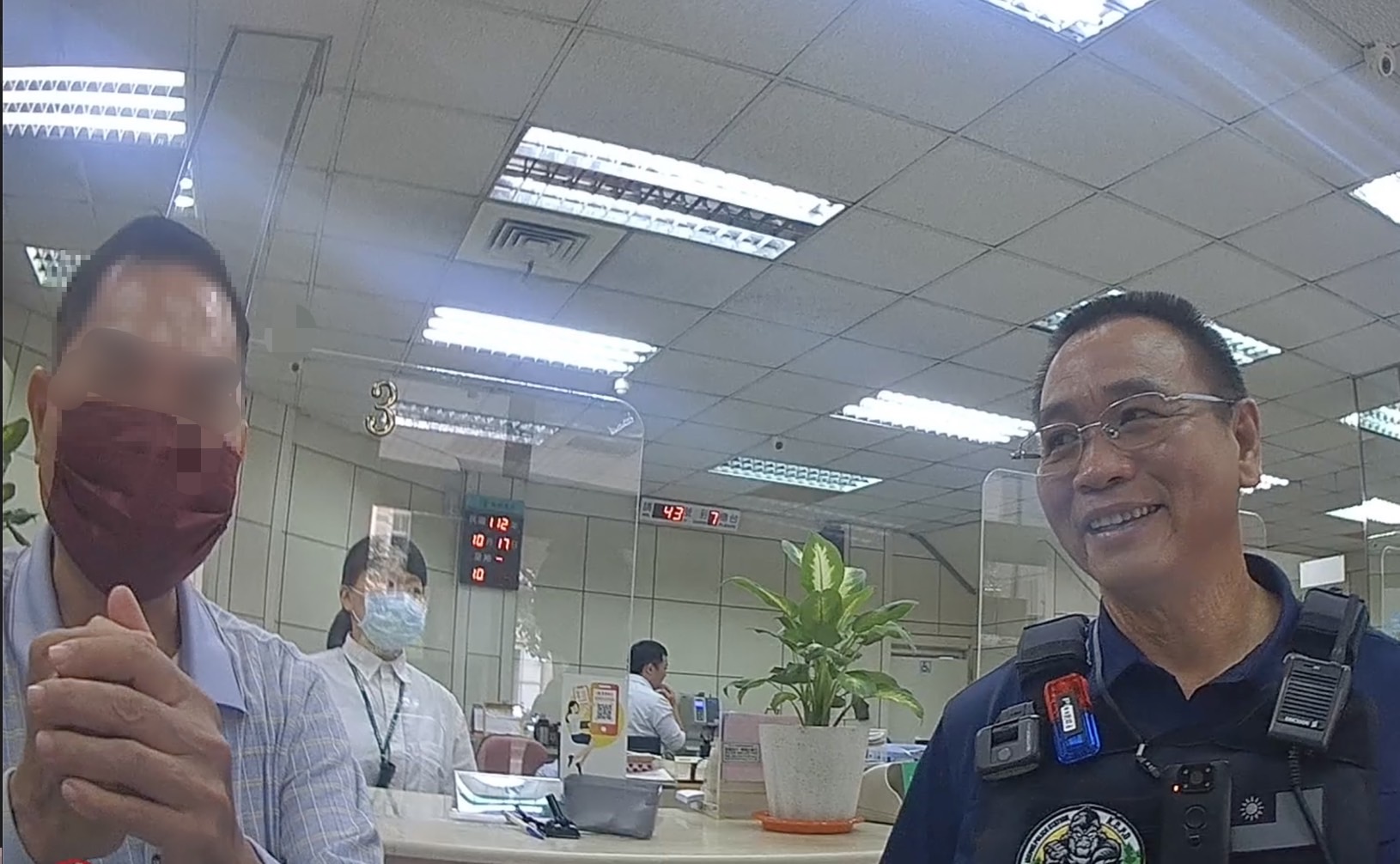 鼓山分局內惟所巡佐劉昭永、警員蔡柏盛於19日上午,接獲轄內銀行通報有老翁疑似遭詐騙。年逾六旬的陳姓老翁臨櫃向行員表示要匯款3萬給女網友,因這位素未蒙面且認識不到一個月的女網友向陳翁聲稱自己的父親過世,但距離發薪日還有一段時間,遂向陳翁週轉三萬元整,陳翁不疑有他前往銀行匯款。銀行行員一聽內容察覺為常見的交友詐騙,立即報警求助。