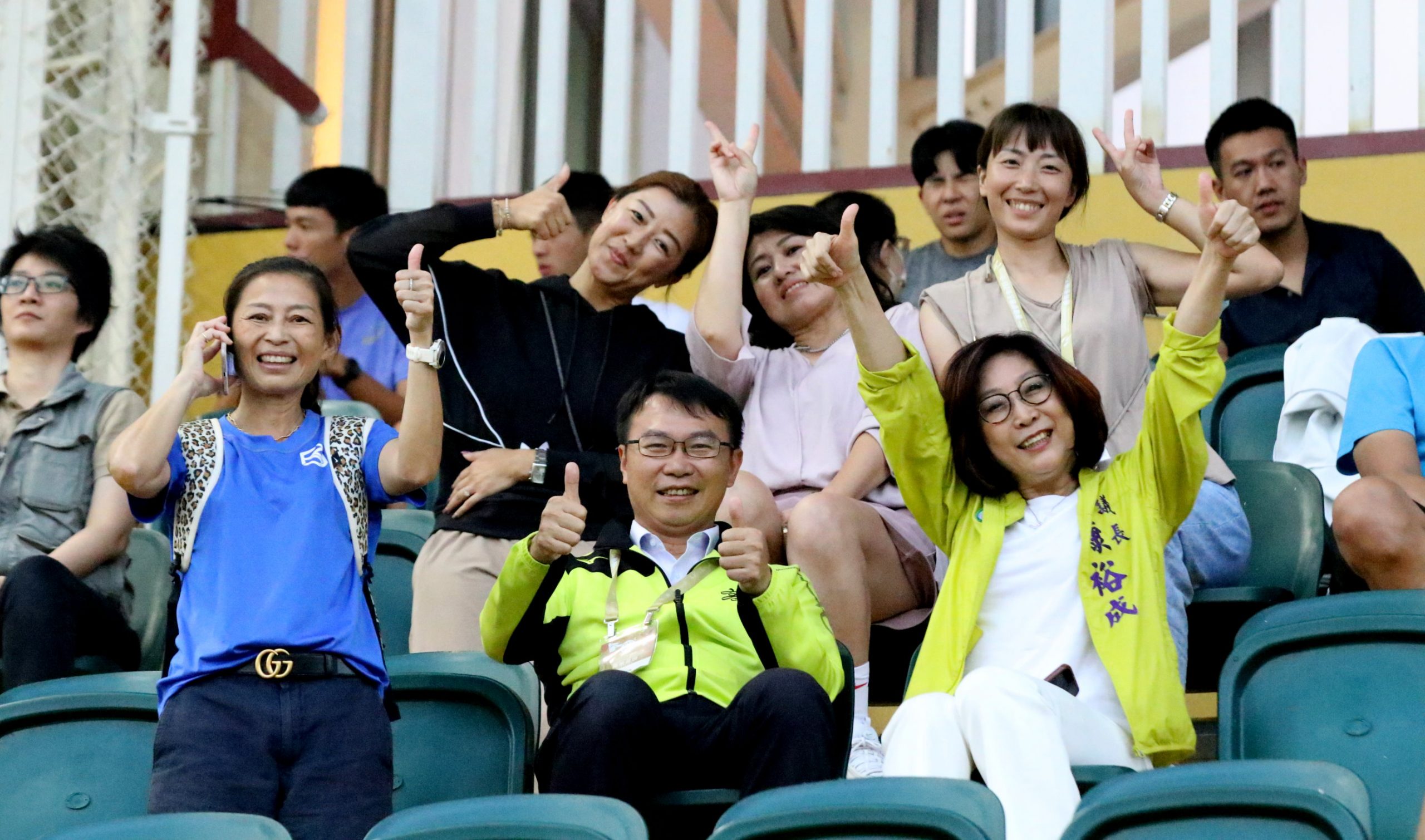高雄市議長康裕成(右1)也特別赴台南為全運會參賽選手們加油。(高雄市政府運動發展局提供)