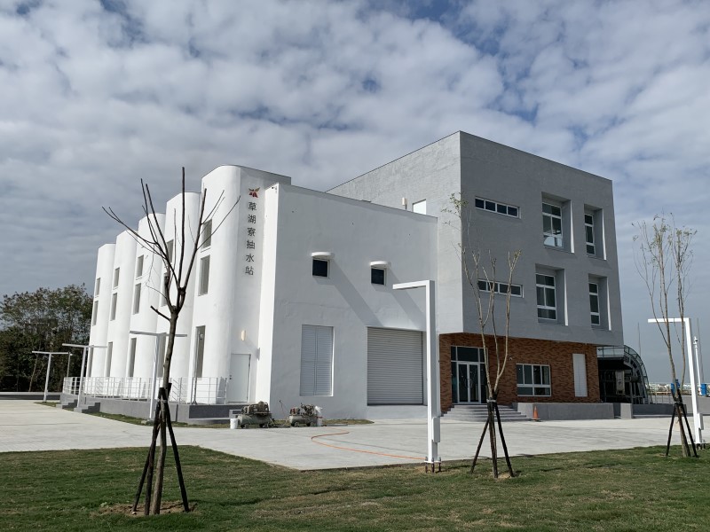 「臺南市安南區北安商業區市地重劃抽水站新建工程」,打造臺南市第一座兼具智慧功能及建築美學之「草湖寮抽水站」 。(台南市水利局提供)