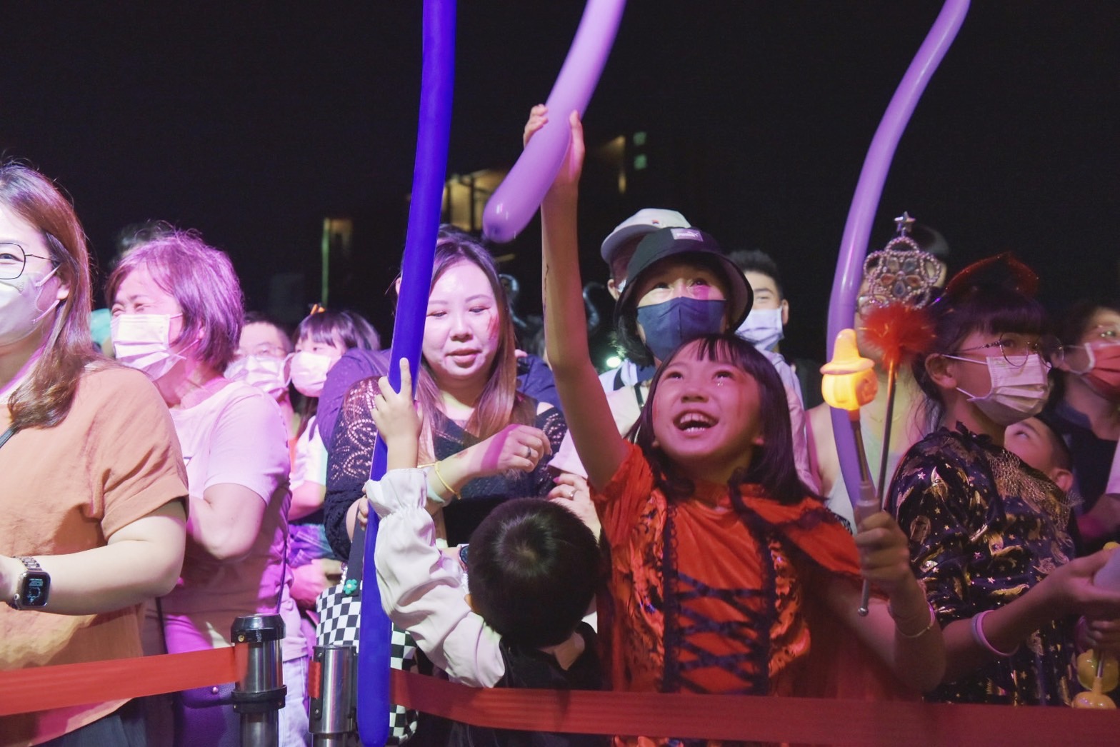 高雄市首次萬聖節大遊行熱鬧登場,以「萌鬼萬聖夜」為變裝主題,融入臺灣文化元素,吸引6萬民眾與親子們闔家上街變裝搞怪。(高雄市政府提供)