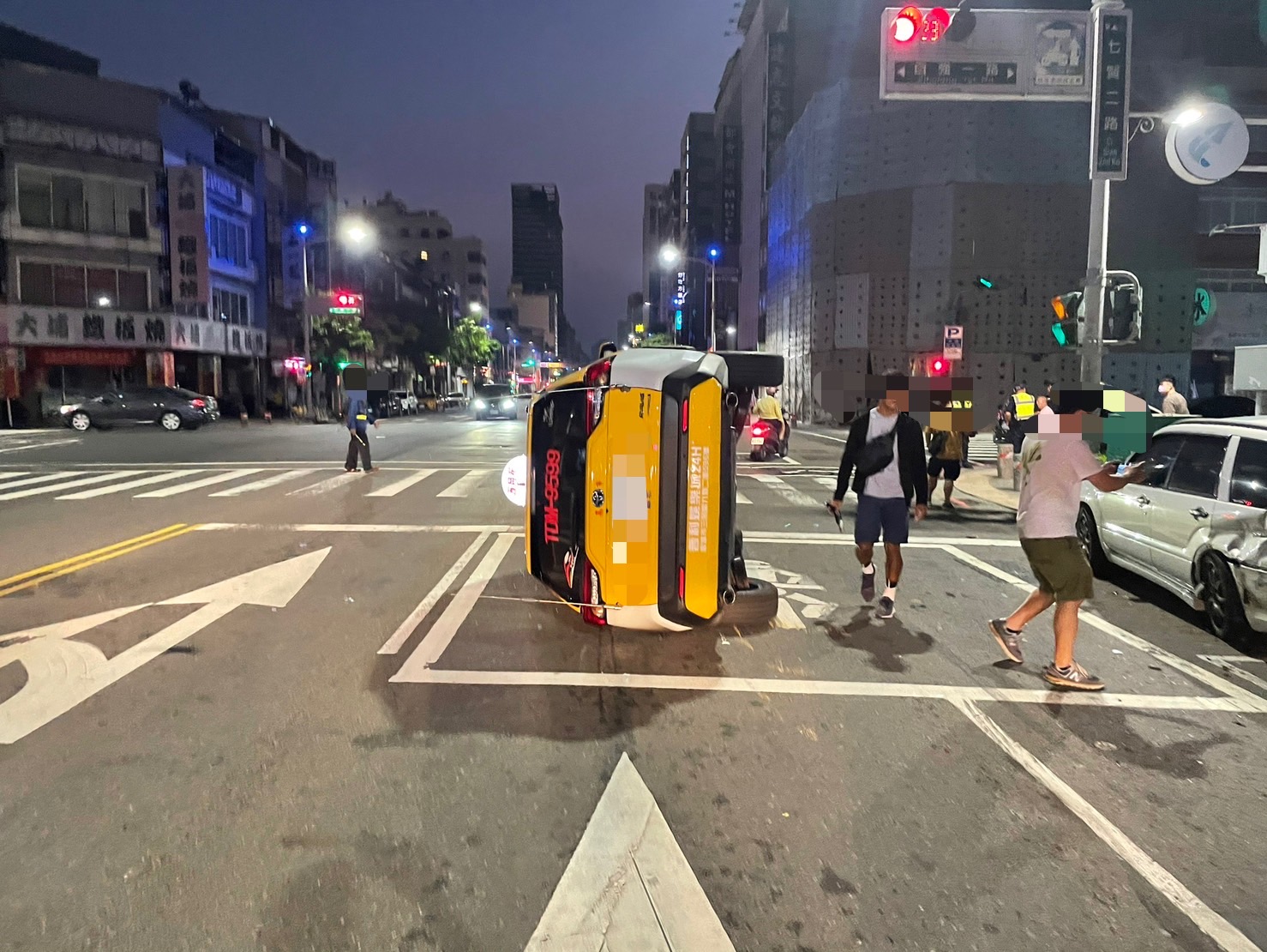 警方指出,新興警分局前金所巡邏警組巡經前金區七賢二路與自強一路路口時,發現一起車輛翻覆之交通事故,立即協助救出蘇姓駕駛(男、58歲),駕駛輕微擦傷未送醫。