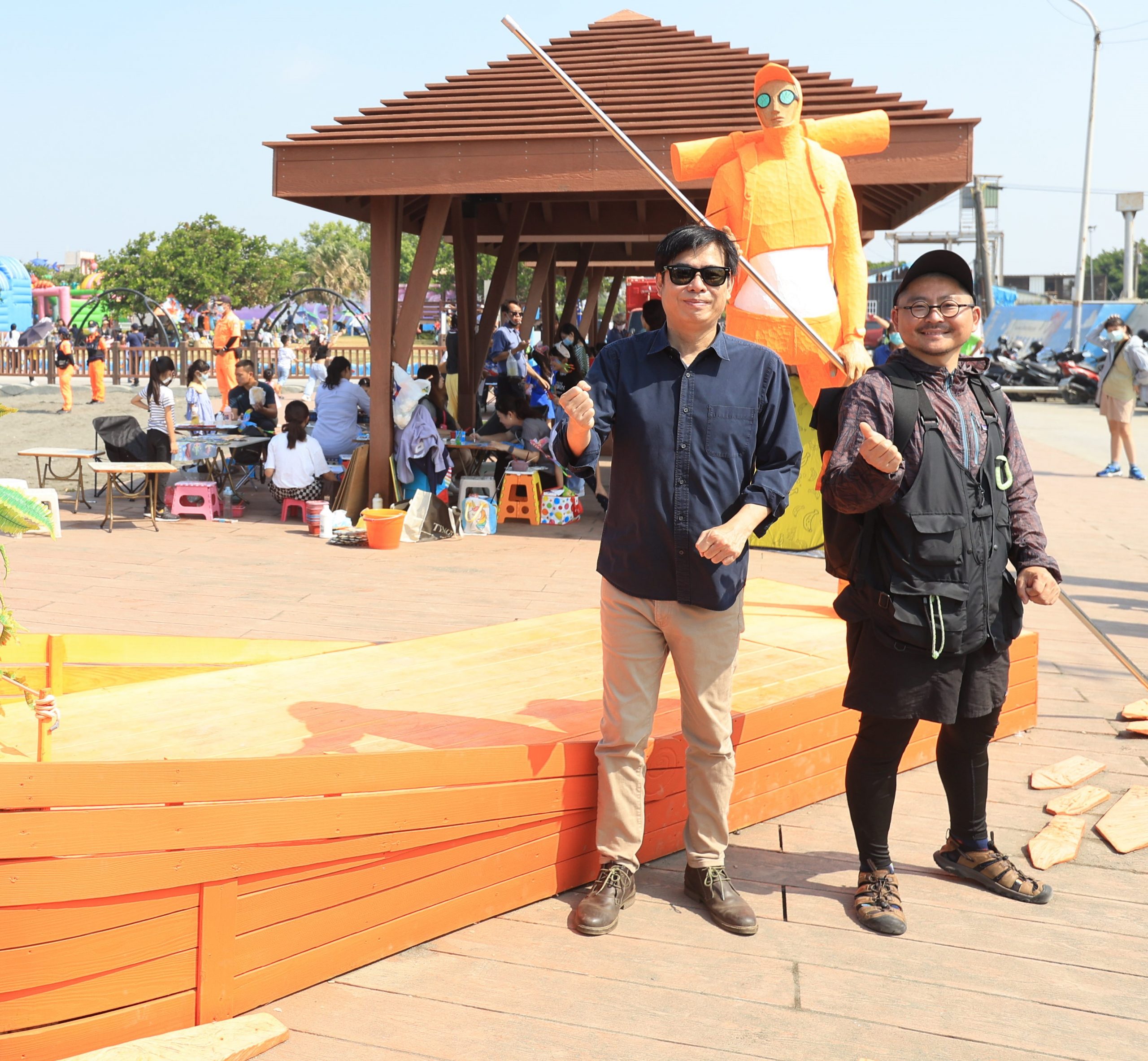 此外,陳其邁也與日本藝術家阿部乳坊走訪設置於彌陀漁港的觀光意象藝術品,以「旅途之海」為主題,自10月20日起至11月25日展示在彌陀漁港的堤防步道、水中廊道及親水沙灘等場域,邀請民眾一起進行想像的時光旅行。