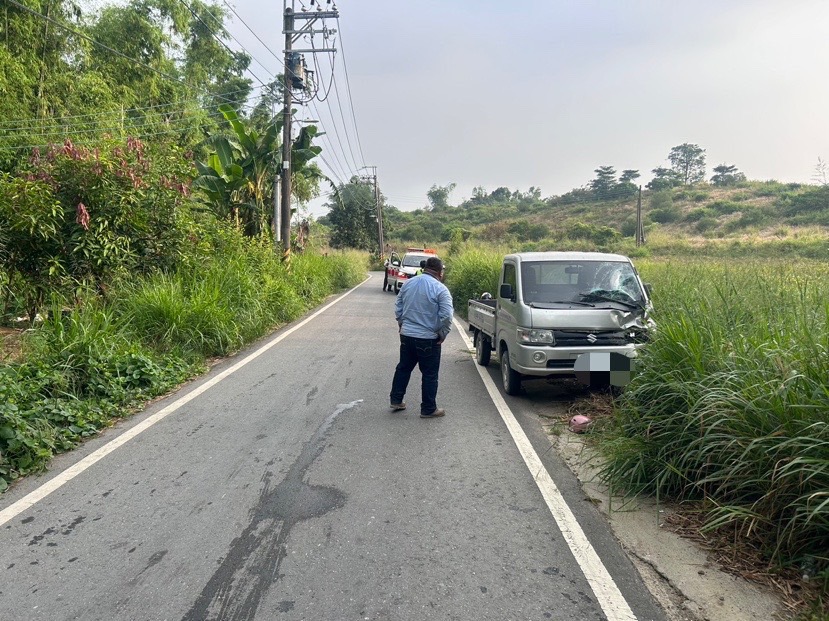 現場為47歲徐姓男子駕駛自小貨車由拷潭路北往南方向,與對向機車雙載騎士(一男、一女)發生碰撞,機車雙載受傷送醫搶救,汽車駕駛酒測值為0,詳細肇事原因有待鑑定。