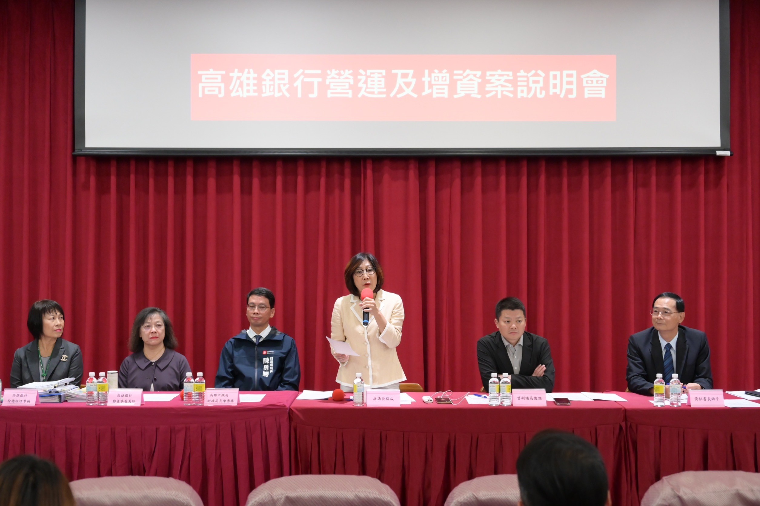 (記者李麗華報導)議會今(7)日下午舉行「高雄銀行營運及增資案」說明會,邀請市府財政局長陳勇勝及高雄銀行董事長鄭美玲說明50億元現金增資案目的及市府參與增資情形。