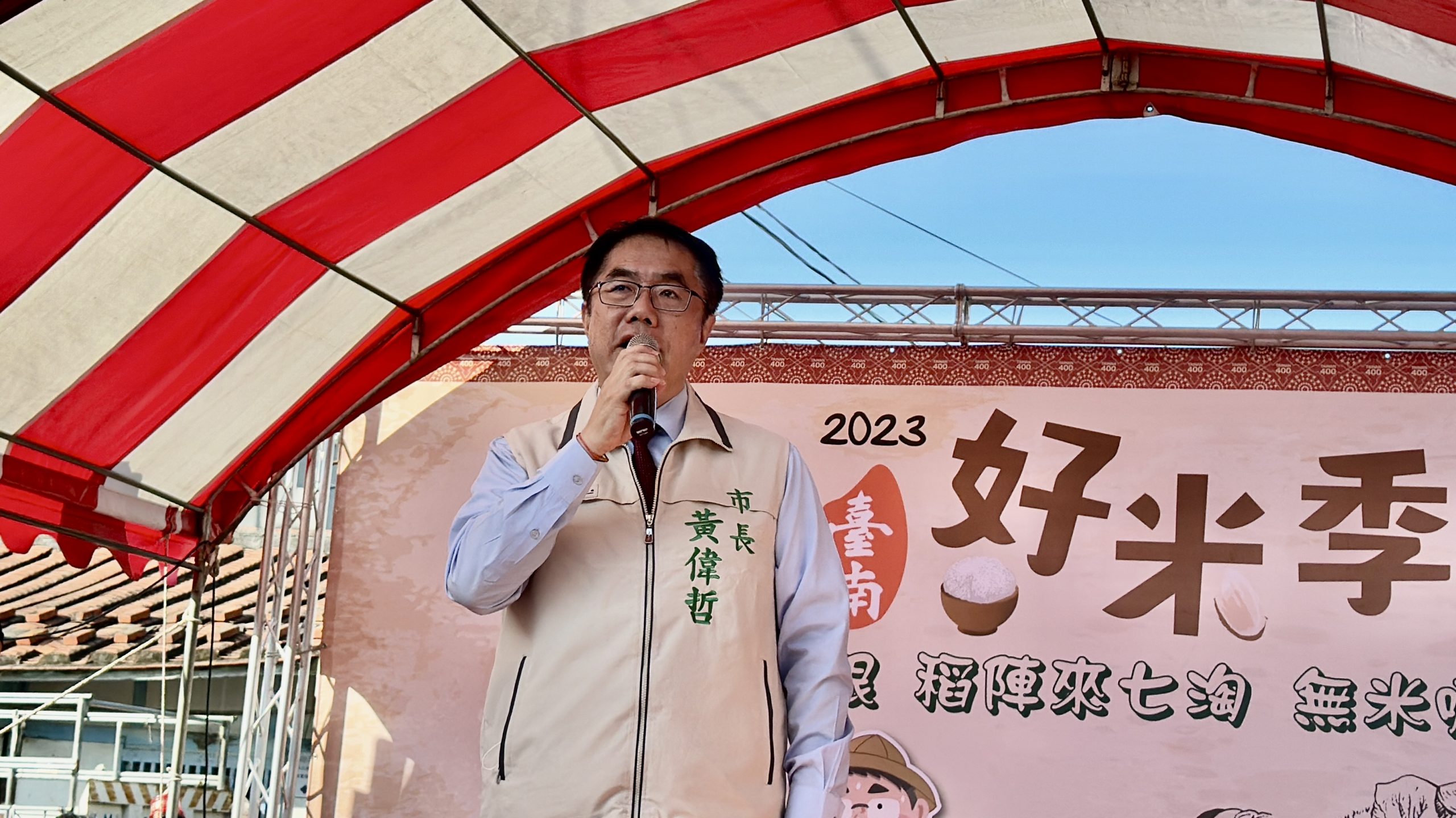 2023台南好米季於今(11)日在後壁菁寮老街登場,台南市長黃偉哲下午出席開幕儀式致詞表示,後壁是魚米之鄉,更是嘉南平原的大糧倉,生產的稻米品質優良,甚至可以外銷到以生產好吃白米聞名的日本市場,非常不簡單。現在水庫水量充沛,農業可以正常灌溉,期待未來有更多好米提供大家享用。